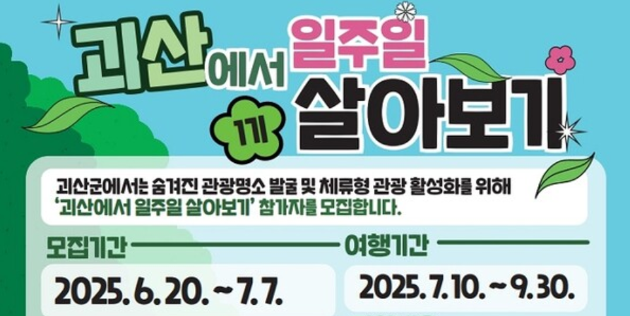 여행을 다니다 보면 가끔 이런 생각이 들지 않나요? "이곳에서 조금 더 오래 머물고 싶다", "관광지를 스쳐 지나가는 게 아니라 진짜 이곳의 생활을 경험해보고 싶다"는 마음 말이에요. 그런 분들을 위한 완벽한 기회가 찾아왔습니다! 바로 2025 괴산 일주일살기 프로그램이에요.