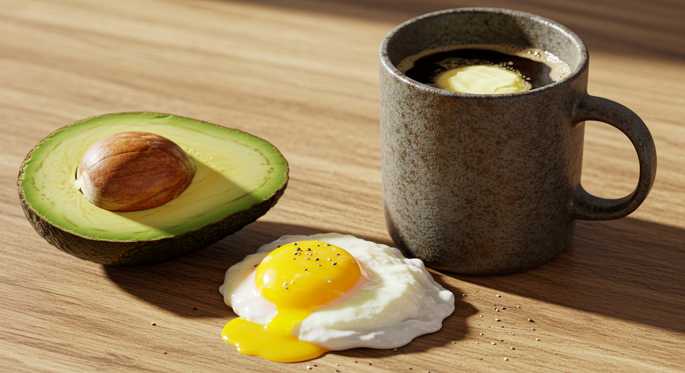 예: 아침엔 밥 대신 버터 커피 + 삶은 달걀 2개 - 지방을 '좋은 지방'으로 채우세요