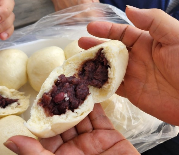 구매 팁을 알려드리자면, 바로 드실 거면 따끈한 상품을, 1~2시간 후에 드실 거면 식혀놓은 상품을 추천드려요. 찐빵은 역시 막 쪄낸 따끈할 때가 제일 맛있거든요! 집에 가져가서 먹을 거면 전기밥솥이나 전자레인지, 찜솥으로 데워 드시면 돼요. 상자에 섭취방법이 자세히 나와 있으니 걱정 마세요!