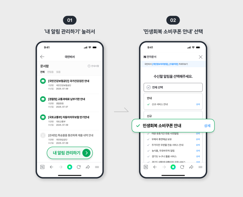 국민비서 알림 설정 하나로 소중한 소비쿠폰 혜택을 누릴 수 있습니다.