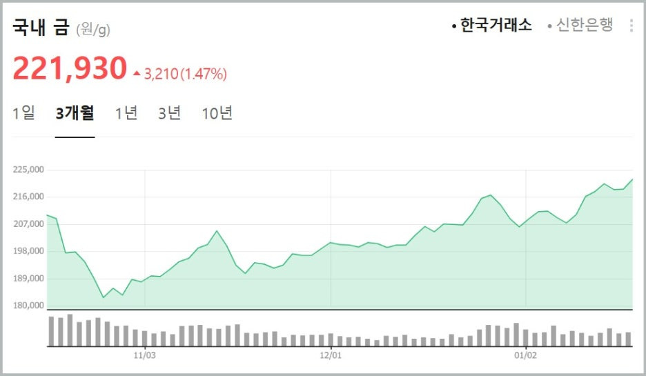 한국거래소 기준으로 금 1g당 221,930원으로 마감되었으며, 이를 한돈(3.75g) 단위로 환산하면 약 832,237원 수준입니다. 한국표준금거래소는 24K 순금 매입가를 808,000원, 판매가를 970,000원으로 제시했습니다.