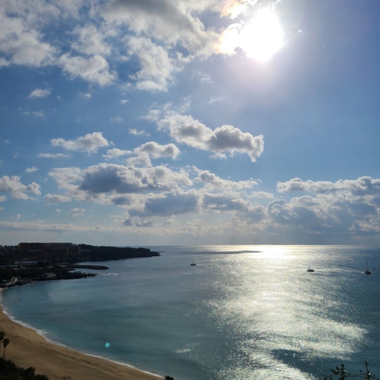 정오의 윤슬: 뜨거운 태양 아래 윤슬은 마치 다이아몬드 가루를 뿌린 듯 화려하고 눈부셔요. 선글라스 필수!