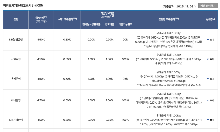 💡 팁: 기본금리 4.5%를 제공하는 6개 은행에서 본인의 거래 패턴에 맞는 우대조건을 확인하여 선택하세요!