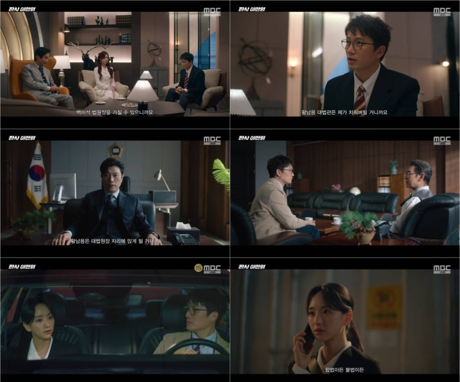 7-8회: 판을 짜는 이한영의 전략 추용진 사건을 완벽하게 마무리하고 우교훈까지 낙마시킨 이한영. 강신진은 황남용을 차기 대법원장으로 만들려고 했지만, 이한영은 오히려 백이석 법원장을 추천하며 자신만의 판을 깔기 시작했어요. 강신진의 신뢰를 얻으면서도 동시에 그를 무너뜨릴 준비를 착착 진행한 거죠.